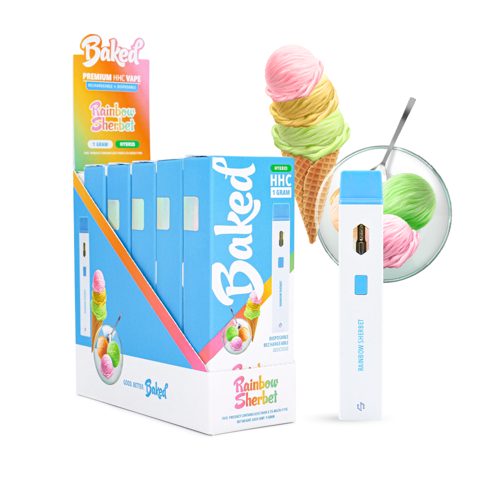 The Baked HHC 1-Gram HHC Vape Pen – Rainbow Sherbet (Hybrid) delivers a vibrant, dessert-inspired flavor blending fruity and creamy notes reminiscent of classic sherbet. Designed in a compact 1-gram disposable format, this vape pen offers smooth performance and colorful flavor in a convenient size.