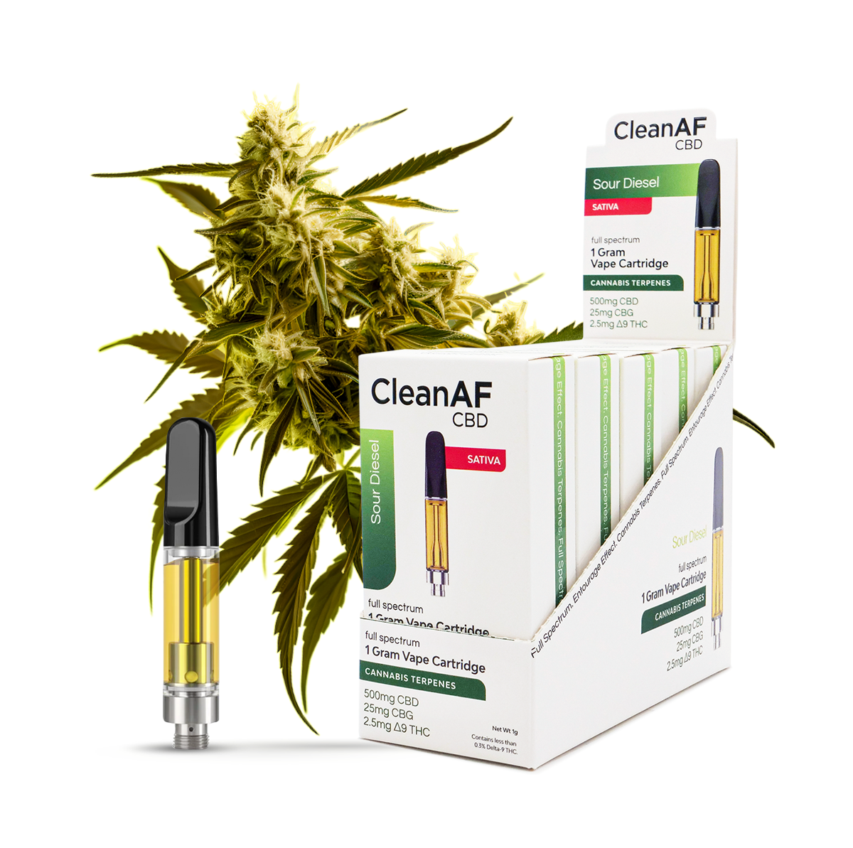 The CleanAF Sour Diesel THC Vape Cartridge delivers a bold, herbal flavor profile with grassy undertones and the classic “gassy” cannabis aroma associated with Sour Diesel. Crafted with full spectrum oil, this cartridge is designed to provide a balanced, entourage-driven experience with mild psychoactive effects.